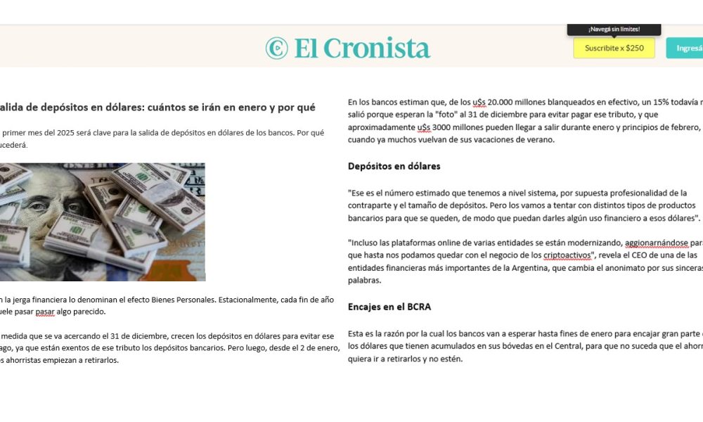 Para ilustrar el impacto de la inflación en Argentina, Sardans comparte un caso: una deuda de 50.000 dólares contraída en 2008 hoy equivale a solo 10.000 dólares debido a la devaluación y el deterioro de la moneda. “Esto refleja cómo los ahorros en pesos han sido literalmente destruidos por la política económica del país,” señala. El ejemplo ilustra lo que un cliente le dijo al especialista en un encuentro.