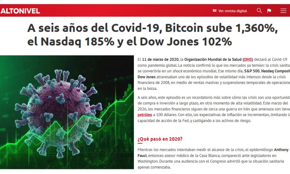 En marzo de 2020, el miedo a una depresión global por Covid-19 llevó a ventas masivas en casi todos los mercados. Sin embargo, quienes mantuvieron posiciones o compraron durante las caídas terminaron participando en uno de los ciclos alcistas más pronunciados de los últimos años.
