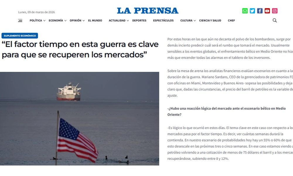 “Cuando uno está en acciones tiene que estar preparado para caídas del 50%. Si no, no estés en acciones. Situaciones como la de ahora son momentos de oportunidad para entrar, no momentos para huir”, afirmó Mariano Sardáns, CEO de la Gerenciadora de Patrimonios FDI, en entrevista con ALTO NIVEL.