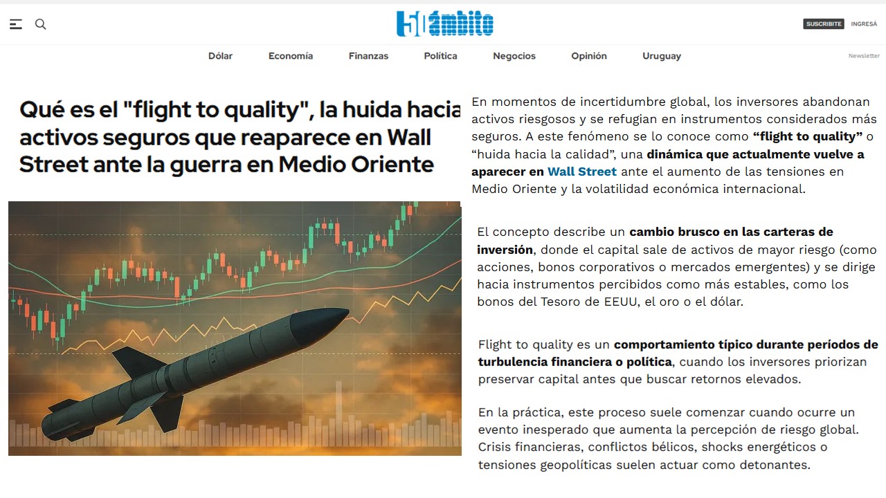 ÁMBITO – ARGENTINA: Qué es el “flight to quality”, la huida hacia activos seguros que reaparece en Wall Street ante la guerra en Medio Oriente