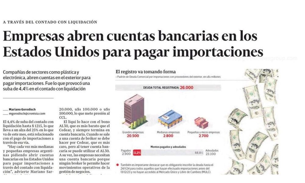 EL CRONISTA – ARGENTINA: Abren cuentas bancarias en Estados Unidos para pagar importaciones.