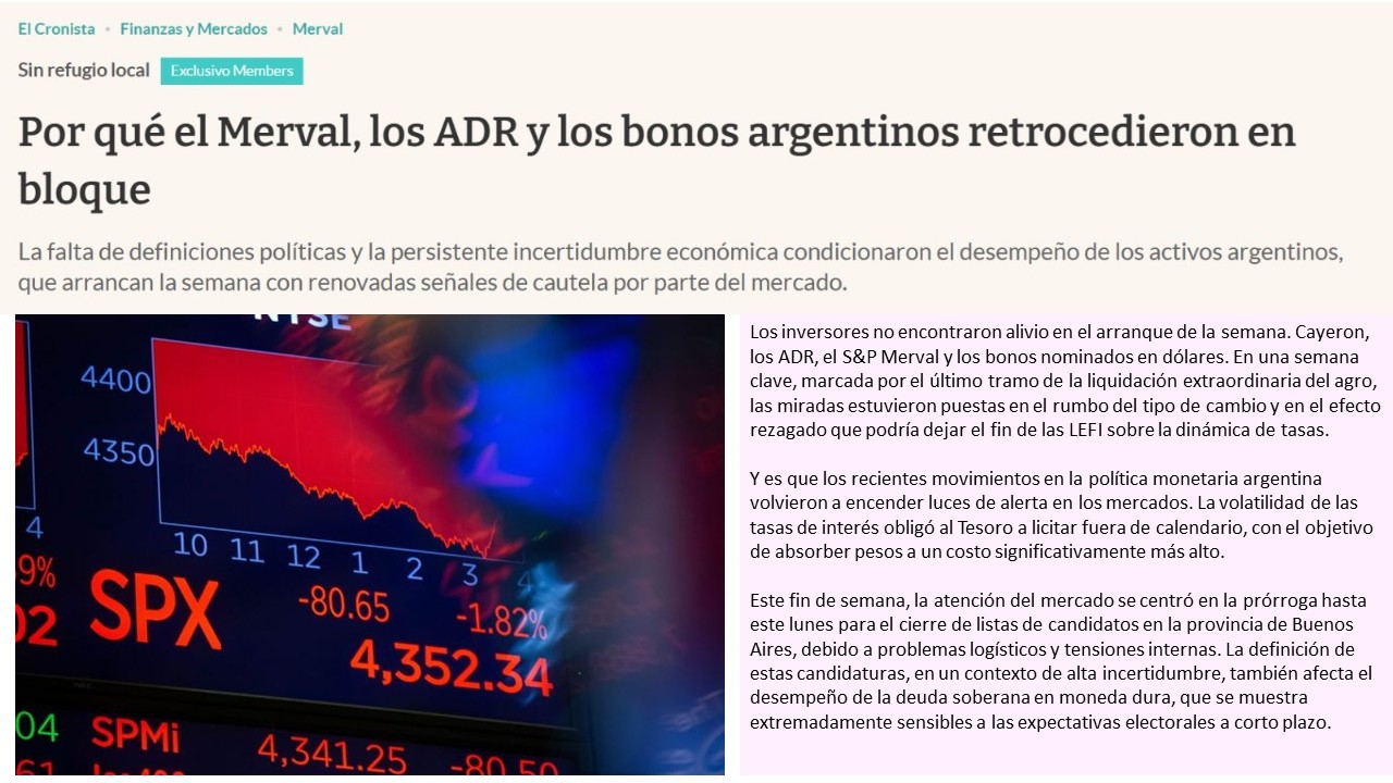 EL CRONISTA – ARGENTINA: Por qué el Merval, los ADR y los bonos argentinos retrocedieron en bloque